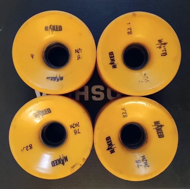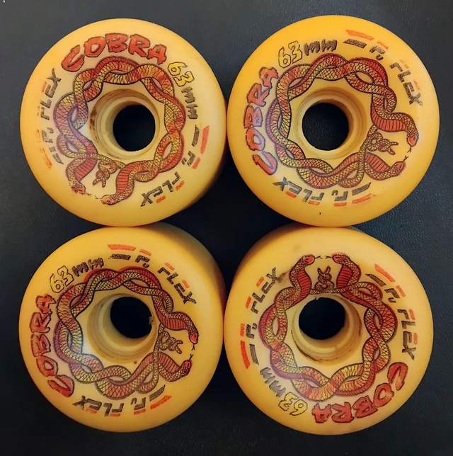 2 juegos de ruedas vintage 80’s para skateboard long cruiser surfskate – Naked 76mm 82A en buenas condiciones (25€) – Flex Cobra 63mm 90A como nuevas (30€)